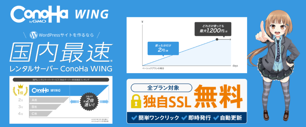 ConoHa WINGとは「国内最速・最安級・超安定」の三拍子がそろったレンタルサーバーです。